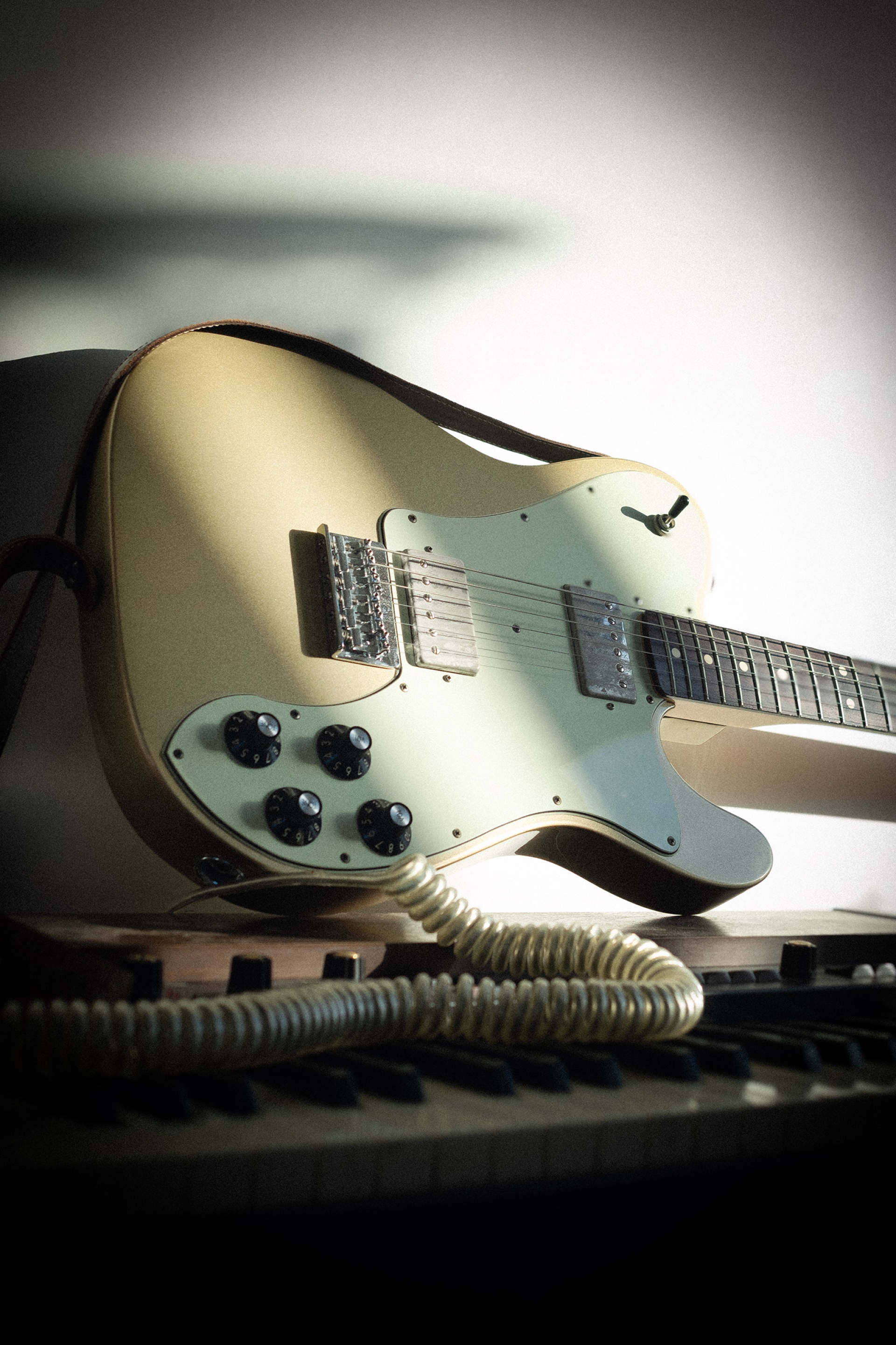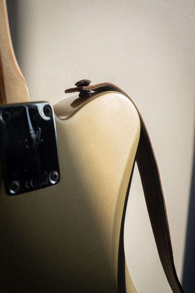 Construcción clásica de Alder, neck de Maple perfil en“C” fretboard de Rosewood radio 12” algo bastante inusual en una tele. Escala 25.5” de 21 trastes.
